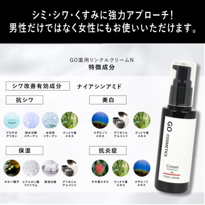# メンズ クリーム 薬用 オールインワン 美白 保湿 シミ シワ ケア 50mL GO COSMETICS